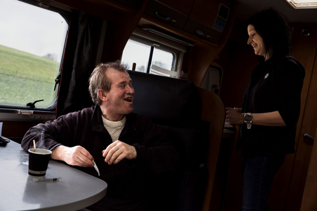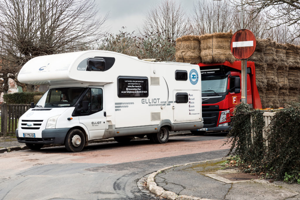 Nine o’clock in the morning. The near-zero temperature and the icy wind of the Opal Coast intensify the feeling of cold. Thibault and Léa, two of the three educators from the Pamela (Mobile Reception, Listening, Liaison and Support) program in Berck-sur-Mer (62), embark on board their camper van.
